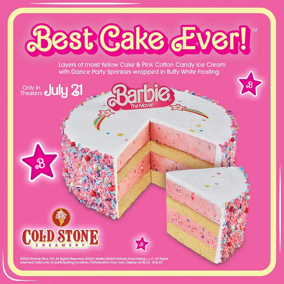 Get ready to embark on a delightful journey of flavors and fun with Cold Stone Creamery's Barbie movie-themed treats. Indulge in the Pink Cotton Candy Creation™ and savor the Best Cake Ever, specially crafted to bring the iconic Barbie character to life. Don't forget to enter the Barbie The Movie Sweepstakes for your chance to win incredible prizes. Let Cold Stone Creamery be your go-to destination for sweet moments and unforgettable memories this summer. For full details and sweepstakes rules, visit https://coldstonecreamery.com/BarbieTheMovieSweeps between June 28 and August 8, 2023. It's time to sparkle and enjoy a summer filled with BARBIE magic!